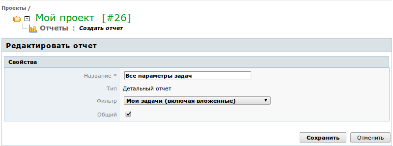 - Если вы хотите, чтобы вашим отчетом пользовались другие, отметьте опцию "Общий". Общие отчеты можно строить только на основе общих фильтров.