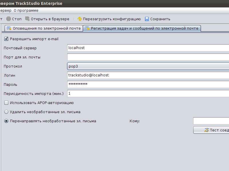 Эту возможность нужно включить в Server Manager и заполнить необходимые поля: почтовый сервер, протокол, логин и пароль. Вы также можете указать периодичность обработки входящей почты и что делать с не прошедшими фильтры письмами (их можно удалять или перенаправлять на другой адрес).