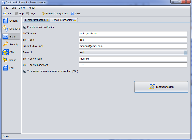 Для этого нужно включить рассылку оповещений и уведомлений в Server Manager. Укажите адрес SMTP-сервера и данные почтовой учетной записи, если для отправки требуется авторизация. Также укажите обратный адрес.