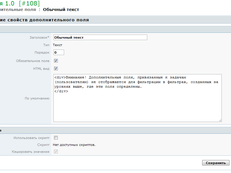 Дополнительное поле типа Текст