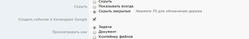 Если указать в такой задаче параметр "Сделать до", она будет создана на эту дату, с продолжительностью полчаса. Если же срок не указывать, событие будет создано на время регистрации задачи. При изменении свойств задачи также изменятся и свойства события.