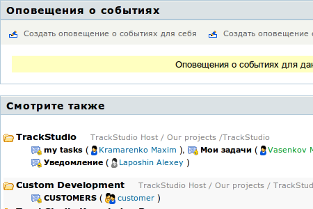 Оповещения об изменениях в задачах вы можете получать по e-mail, RSS или XMPP. Внешний вид писем задается в специальных шаблонах. Для одного пользователя может быть создано сколько угодно оповещений.