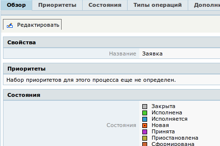 Процессы в TrackStudio используются для определения жизненного цикла задач. Вы можете настроить приоритеты и состояния задач, переходы между этими состояниями, ассоциировать с задачами определенных типов дополнительные поля, настроить права пользователей на изменение состояния задачи.