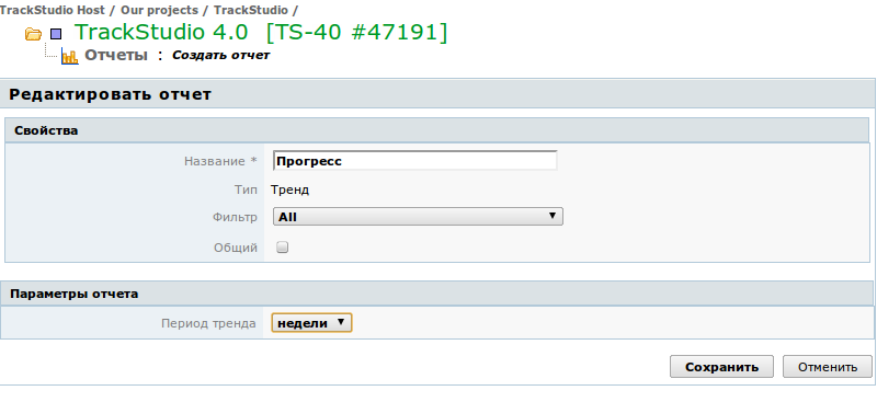 4. В открывшейся форме введите название отчета, выберите фильтр и масштаб времени (например, неделю)
