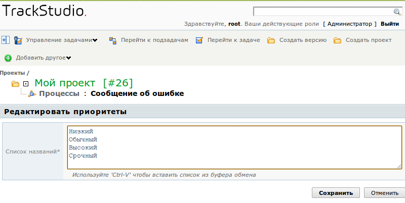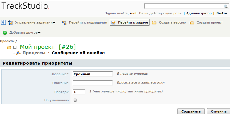 в строке нужного приоритета. В открывшейся форме введите новое название приоритета и, если нужно, измените его параметры.