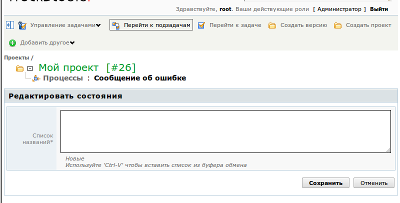 Для того, чтобы редактировать состояния в процессе, перейдите на страницу этого процесса через меню, а затем — на вкладку "Состояния".