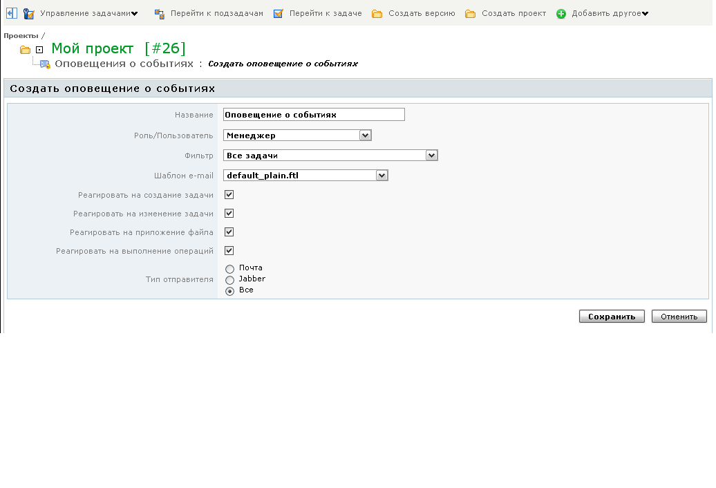 Для уведомлений по XMPP действуют те же самые шаблоны и правила, что и для e-mail. Также для jabber-уведомлений можно использовать свои шаблоны. Для этого название шаблона нужно указать в файле trackstudio.mail.default.properties
