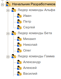 “Leader of Team Alpha” etc. can be real users as well as virtual ones. In the second situation, one (or many) of other users can be assigned as team leaders.